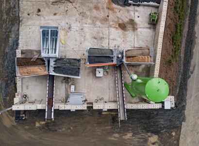 Angefangen hat alles damit, dass das Lager in Marburg zu klein wurde und auch der Betriebshof in Buchenau-Dauthetal nicht mehr genügt hatte. Wo also hin mit der Vielzahl an Geräten, Werkzeug und dem umfangreichen Fuhrpark? An dieser Stelle entstand erstmals die Idee, die eigenen Flächen im Lahntal zwischen Marburg und Biedenkopf bei Buchenau zu nutzen. Hier könnte man den gesamten Fuhrpark und die Geräte lagern. Gleichzeitig kam die Idee auf, die Flächen zu nutzen, um Erden zu sieben, Substrate, Schotter und vieles mehr für den Eigenbedarf zu lagern.